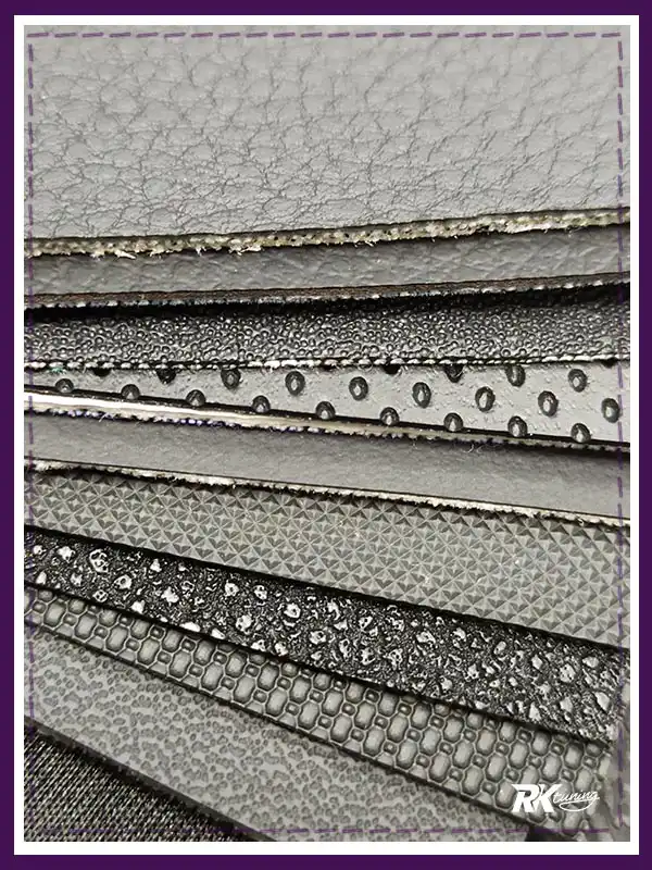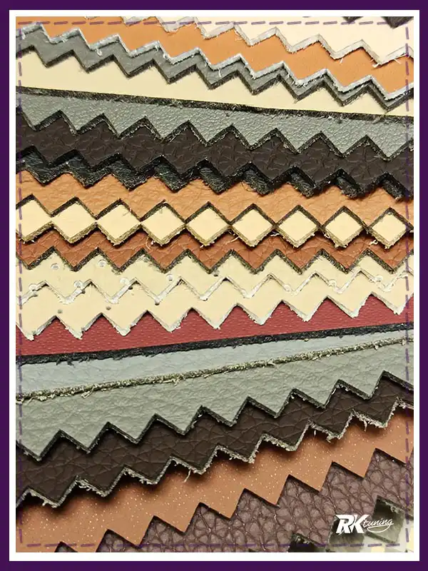 В автомобильной промышленности сегодня наиболее распространены два вида кожзама — бюджетный дерматин и более дорогая экокожа.