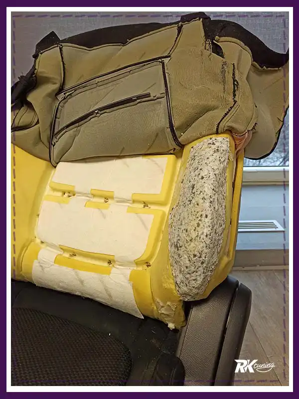 - потери сиденьями упругости, дефектах поролонового наполнителя;